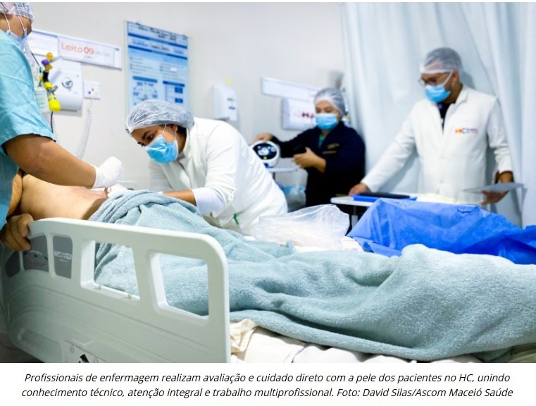 Desde o momento da admissão até as situações mais complexas da internação, o cuidado com a pele passou a ocupar um lugar estratégico na assistência oferecida pelo Hospital da Cidade (HC), o primeiro hospital municipal da história de Maceió. Mais do que tratar lesões, o Serviço de Cuidados com a Pele da unidade foi estruturado para olhar o paciente de forma integral, humanizada e especializada, garantindo mais segurança, conforto e qualidade de vida durante o tratamento.