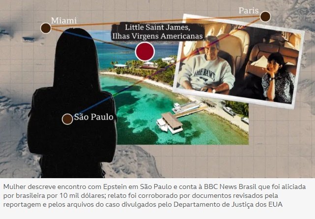 Há neste momento uma investigação que apura se havia uma rede de aliciamento para Epstein no Brasil, aberta pelo Ministério Público Federal após a publicação de uma das reportagens que a BBC News Brasil vem publicando sobre o assunto.
