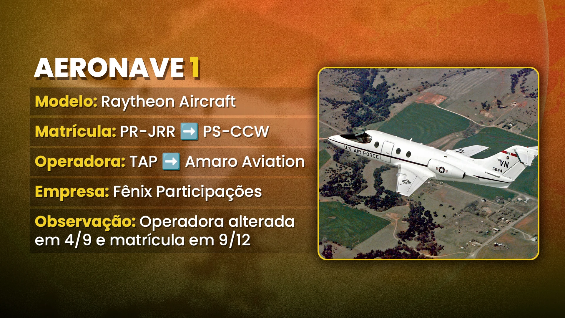 As mudanças não se limitaram à operadora. Em dezembro de 2025, a empresa Fênix Participações solicitou à Anac a alteração da matrícula de um dos jatinhos — um Raytheon Aircraft — que passou de PR-JRR para PS-CCW. Segundo o piloto Mauro Mattosinho, essa teria sido a primeira aeronave adquirida por Rueda.