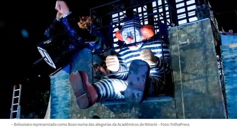 Escola de Samba do Rio de Janeiro retratou ex-presidente condenado preso em momentos distintos, sempre como o palhaço Bozo. Confira as principais imagens